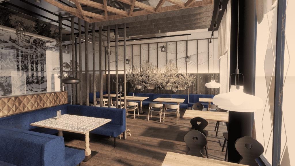 Die beiden Restaurants „The Italian Bavarian“ und „The Kitchen“ stehen sowohl den Mietern als auch der Nachbarschaft der Parkstadt Schwabing offen. Durch Öffnungszeiten über die Bürozeiten hinaus entsteht ein zusätzlicher Impuls zur Belebung des gesamten Areals.