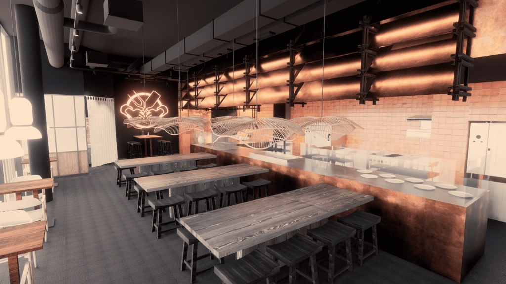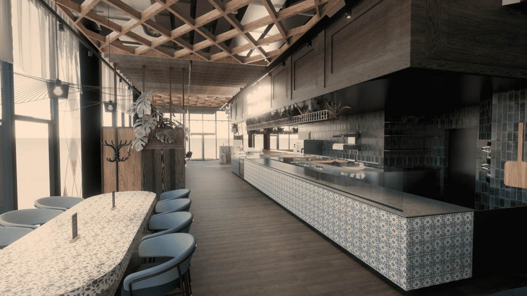 Das zweite Restaurant „The Kitchen“ (ca. 60 Sitzplätze, offene Frischküche, eigener Zugang) setzt auf ein Live-Erlebnis am Teppanyaki-Grill: frische Zubereitung in wenigen Minuten, moderne Präsentation sowie individuell zusammenstellbare Gerichte, darunter asiatische Klassiker wie Okonomiyaki oder verschiedene Grillgerichte.